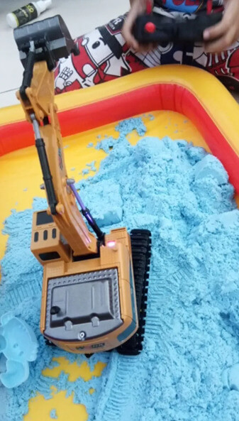 Децата можат со помош на далечинскиот управувач да ја креваат и спуштаат механичката лопата, стимулура копање и товарење на песок, земја и ситни камчиња, исто како вистински багер! Работната платформа исто така може рачно да се ротира за 270 степени, нудејќи уште поголема разновидност во играта.