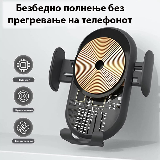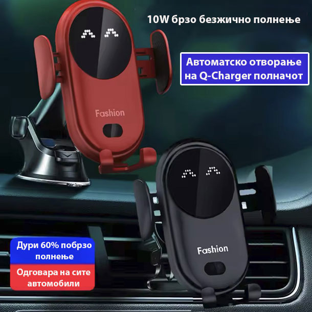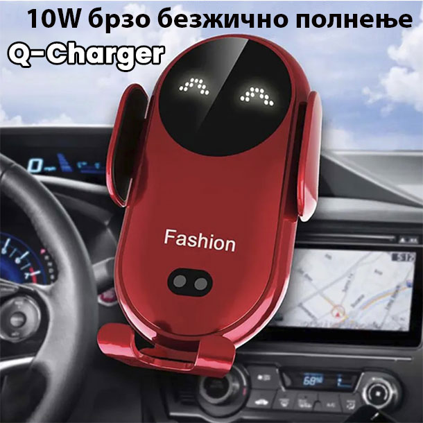 Новата верзија на Q-Charger комбинира функција на држач и полнач за телефон. Автоматското отворање овозможува да го поставите телефонот само со една рака, бидејќи автоматски се отвора кога ќе го доближите телефонот!
