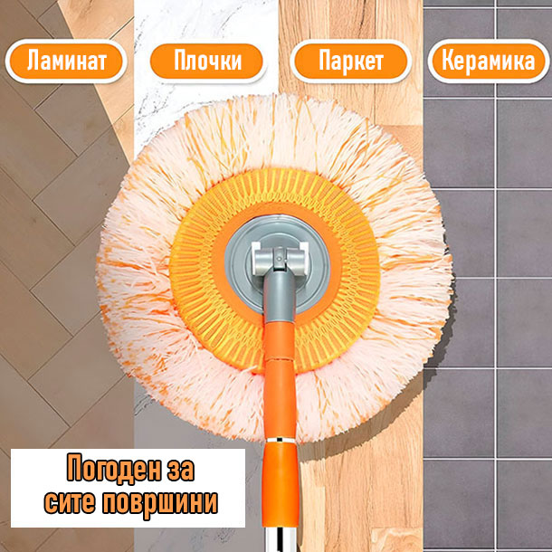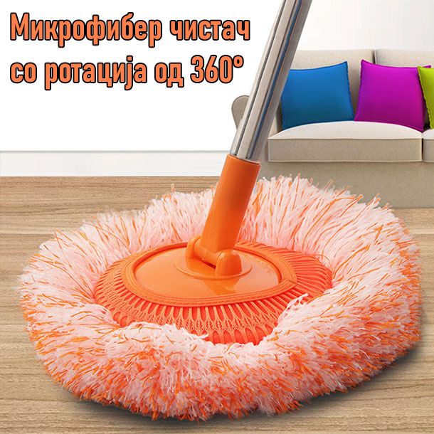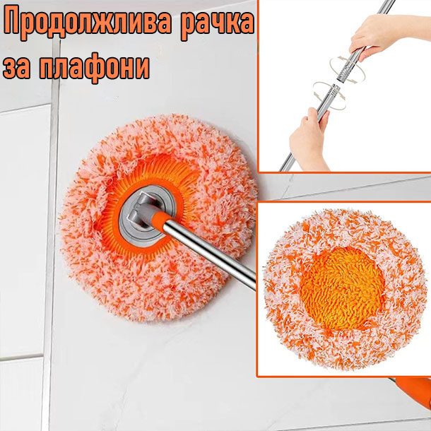 Материјал: ABS, крпа од микрофибер Боја: портокалова Должина на рачка: 115 см Дијаметар на крпата: 28 см