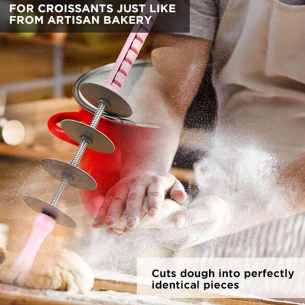 Napravi savršene kiflice i kroasane kao iz pekare za čas posla u svojoj kuhinji. 🥐🥖 Pametni rezač testa u obliku valjka osigurava ravnomerne rezove tokom pripreme testa. Omoguća da savršeno pripremite sve svoje omiljene recepte. Vaše kifilice i ostalo testo će izgledati kao da ih je profesionalac pravio!