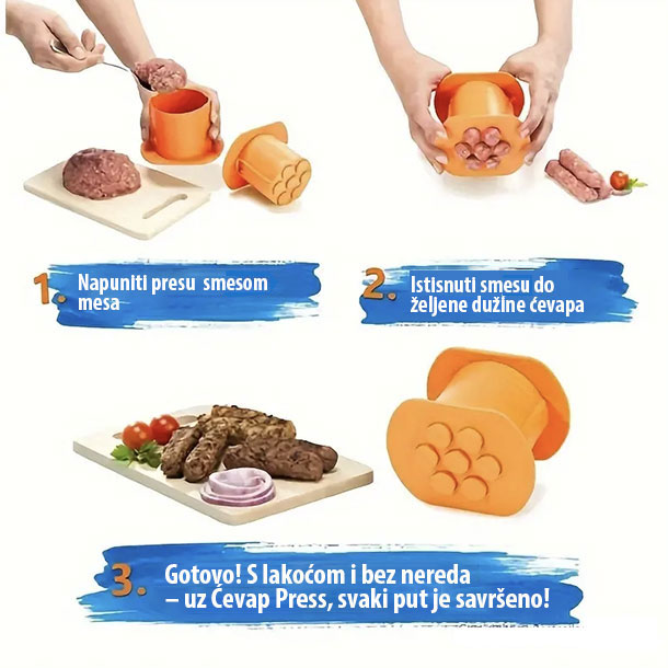 "Ovo je spas za prave ljubitelje ćevapa! Nikad lakše nisam pravio ćevape, samo stavim meso i istisnem, gotovi su za 5 minuta. "