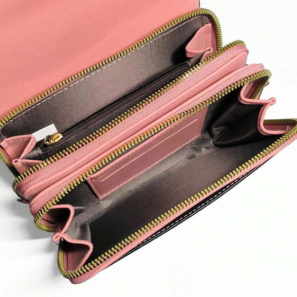 Unutrašnjost torbice sadrži 2 glavna džepa sa patent zatvaračem i 1 unutrašnji džep sa patent zatvaračem za sitne stvari. 3 slota za kartice čine je idealnom za organizaciju telefona, ključeva, novčanika, karmina i drugih sitnica.