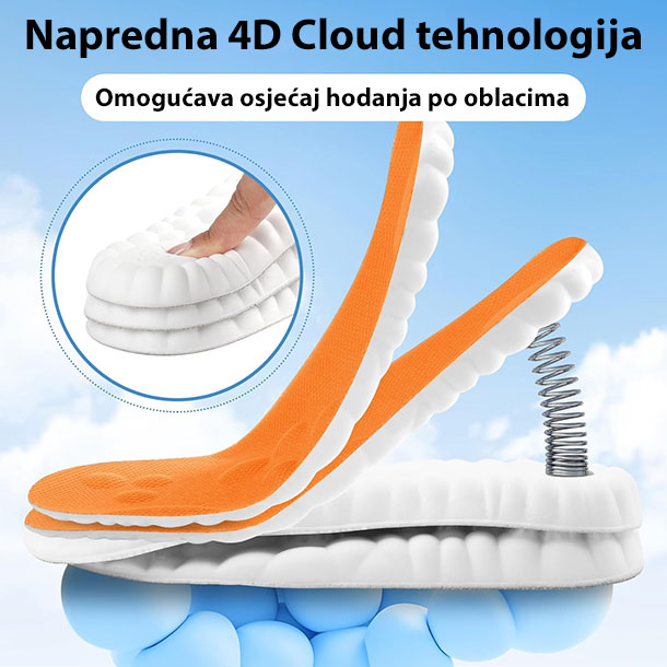Uložak za obuću Cloud Step pruža izuzetnu udobnost i podršku vašim stopalima, koristeći naprednu 4D Cloud tehnologiju koja ravnomerno raspoređuje težinu i smanjuje pritisak na kritične tačke. Ovi ulošci su dizajnirani da pruže optimalnu podršku svodovima stopala, što može pomoći u ublažavanju nelagodnosti tokom hodanja ili stajanja.