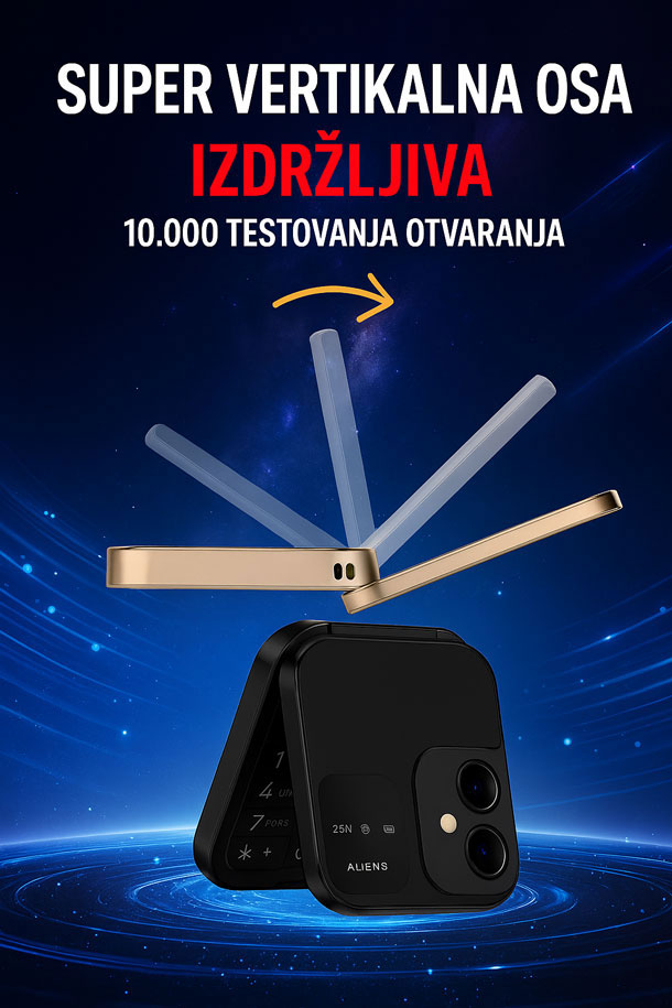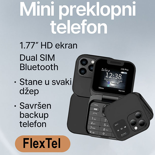 FlexTel preklopni telefon kombinuje praktičnost i jasnoću. Sa ekranom od 1.77 inča i preglednim prikazom, omogućava vam da bez naprezanja očiju čitate poruke i koristite osnovne funkcije. Veliki tasteri dodatno olakšavaju kucanje i biranje brojeva.