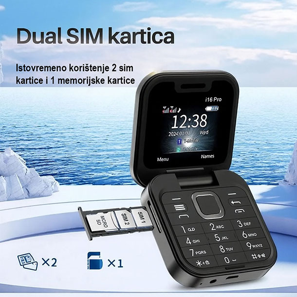 FlexTel je dizajniran za sve koji žele jasan ekran, velike tipke i dugotrajnu bateriju bez nepotrebnih komplikacija. Uz podršku za dvije SIM kartice, kameru i praktične dodatke poput LED lampe i muzičkog plejera, ovaj kompaktan telefon pruža sigurnost i jednostavnost u svakodnevnoj upotrebi.