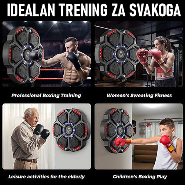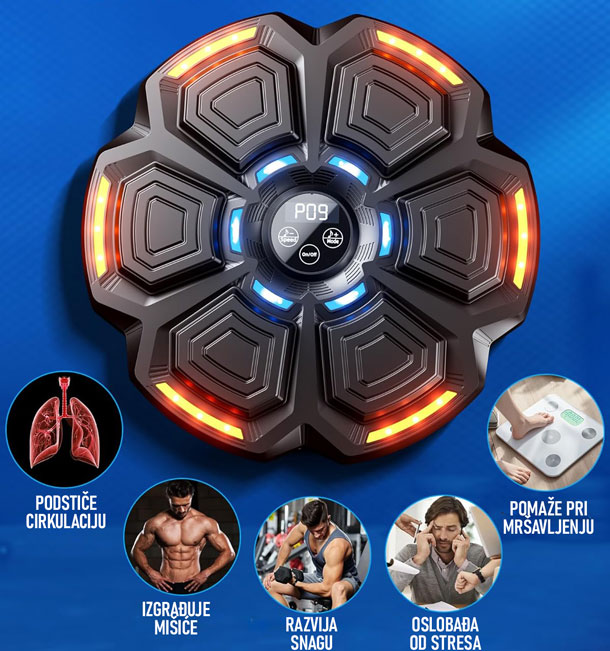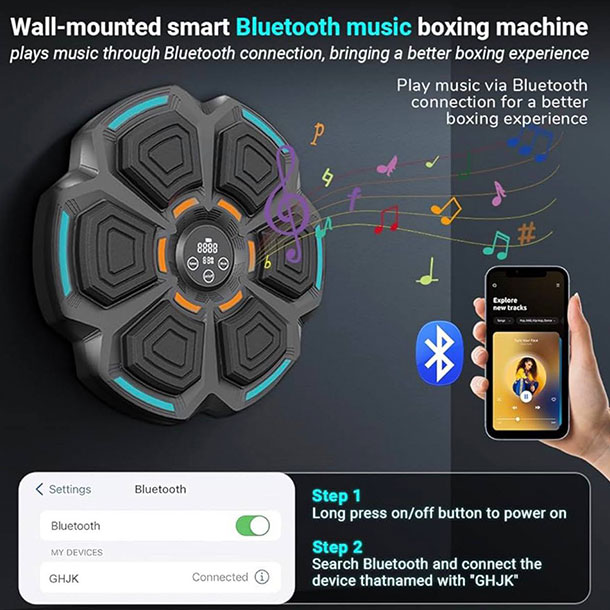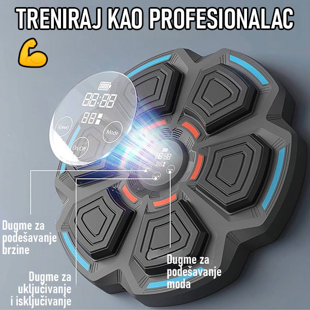Poveži telefon putem Bluetooth-a i pusti omiljenu muziku dok treniraš. Svaki udarac prati ritam, a LED svetla te vode kroz vežbu, čineći trening zabavnim i motivišućim.