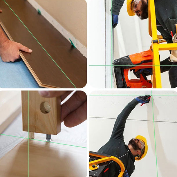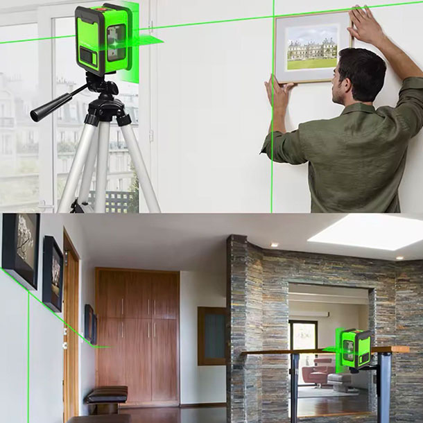 Projekcija jedne horizontalne, jedne vertikalne ili obe linije istovremeno – idealno za oblaganje pločica, postavljanje polica, zidnih panela, tapeta, stolarije ili pregradnih zidova.