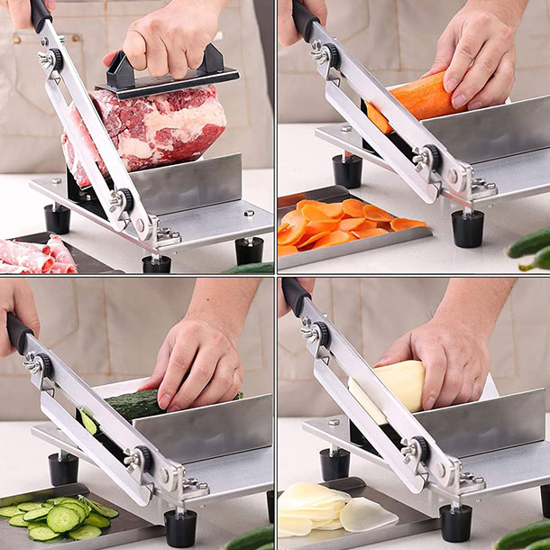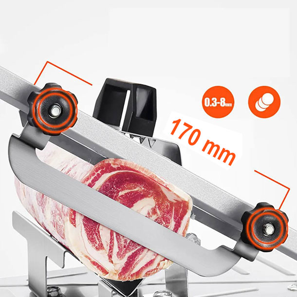 Zaboravite na neravne i debele kriške! Meat Slicer PRO omogućava podešavanje debljine od 0,3 mm do 8 mm, pa lako možete iseći meso, povrće ili voće onako kako vi želite – od ultra tankih rezova za suhomesnate proizvode do debljih komada za pripremu obroka.