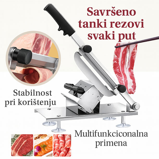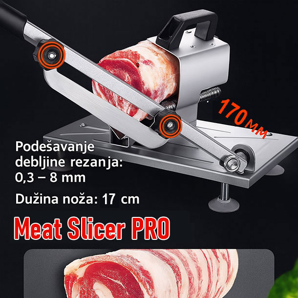 Ako volite savršen isečen kulen, šunku, meso ili povrće, onda je Meat Slicer PRO pravi izbor za vas. Kompaktan, praktičan i izrađen od nerđajućeg čelika, ovaj sekač donosi profesionalne rezultate direktno u vašu kuhinju – bez skupih mašina i bez gubljenja vremena.