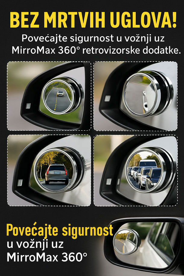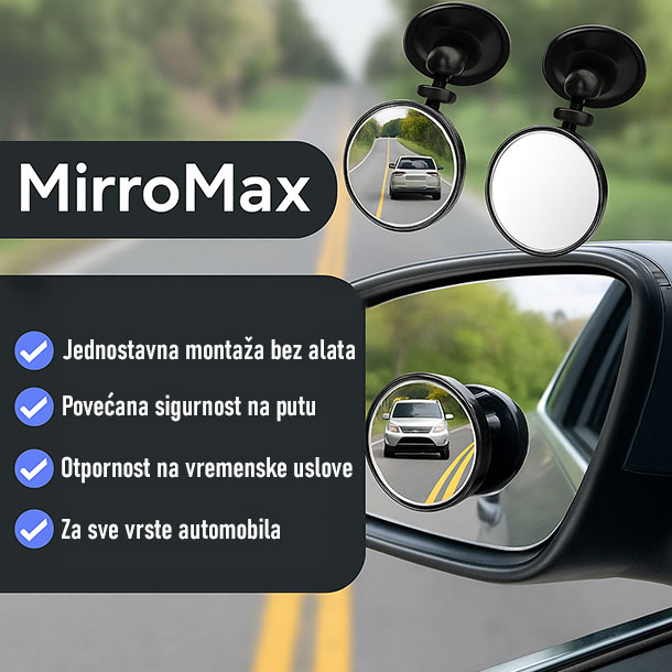 Povećajte sigurnost i vidljivost tokom vožnje uz MirroMax – vrhunski set od dva nastavka za retrovizore sa moćnim usisnim čašicama i rotirajućim dizajnom od 360°!