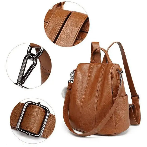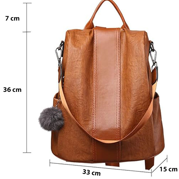 Minimalistički, ali elegantan izgled čini ovaj ranac savršenim dodatkom svakoj odevnoj kombinaciji. Upečatljivi detalji poput metalnih kopči i ukrasnog pompona daju mu dozu luksuza.