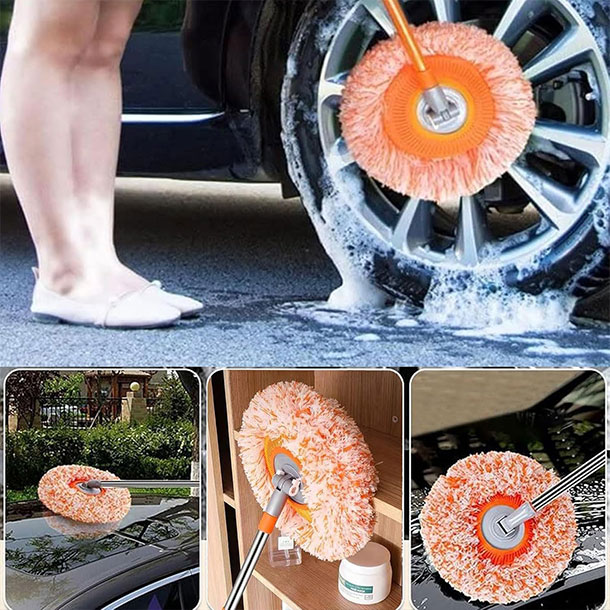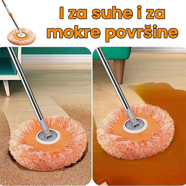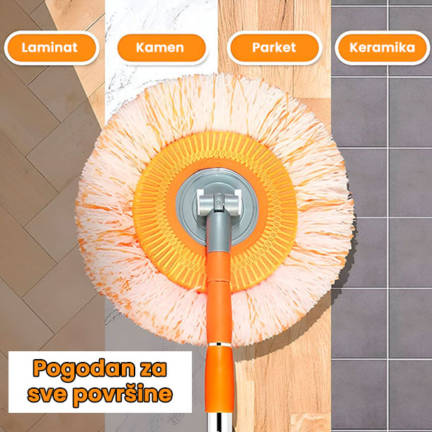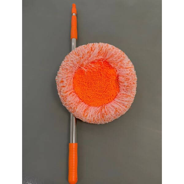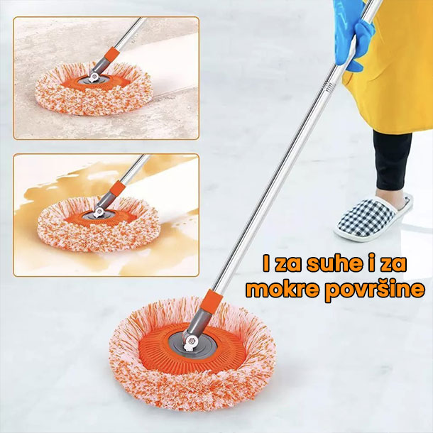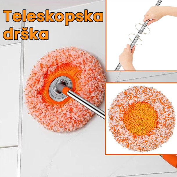 Materijal: ABS, krpa od mikrovlakana Boja: narandžasta Dužina ručke: 115 cm Prečnik krpe: 28 cm